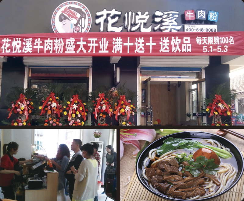 花悅溪牛肉粉在繼承了貴州花溪牛肉粉傳統(tǒng)工藝的基礎(chǔ)上,結(jié)合現(xiàn)代食品工藝,采用澳洲新西蘭進口牛肉為主料,經(jīng)過“煮、吊、鹵、兌”等多道食品工藝加工而成?;◥傁H夥廴诤蠞庀沲r嫩的優(yōu)質(zhì)牛肉、牛肚,加上勁道十足的米粉和秘方熬制的牛肉湯,色、香、味俱佳,令人回味無窮。