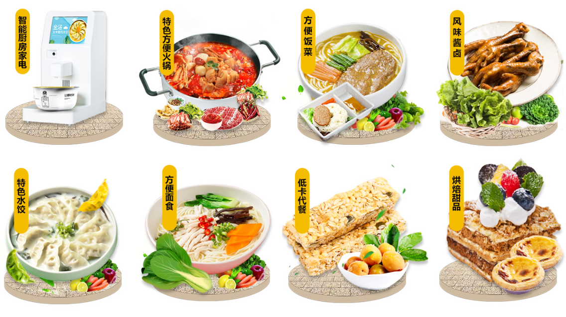 三、品類豐富,滿足高頻剛需:超過200款標(biāo)準(zhǔn)化方便美味,一日三餐一站式購齊,滿足不同家庭成員就餐需求。配合智能廚房家電,收入更加多元。