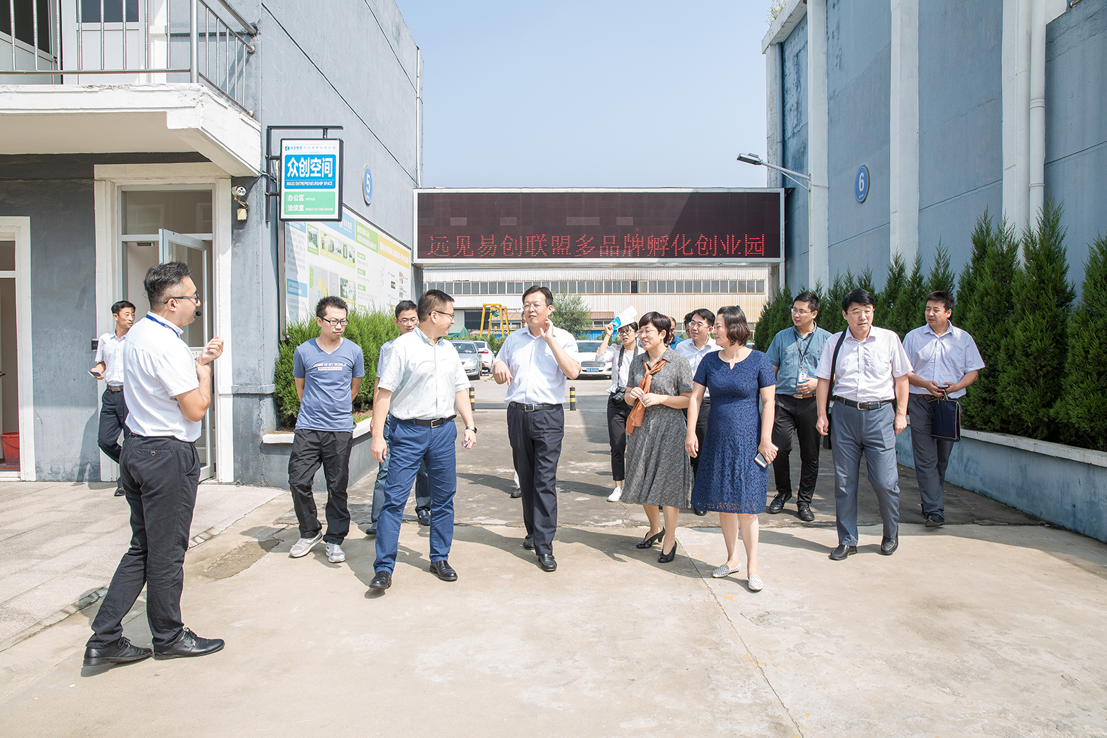 王書記一行正在聽取遠(yuǎn)見創(chuàng)業(yè)園文化理念和發(fā)展歷程的介紹。