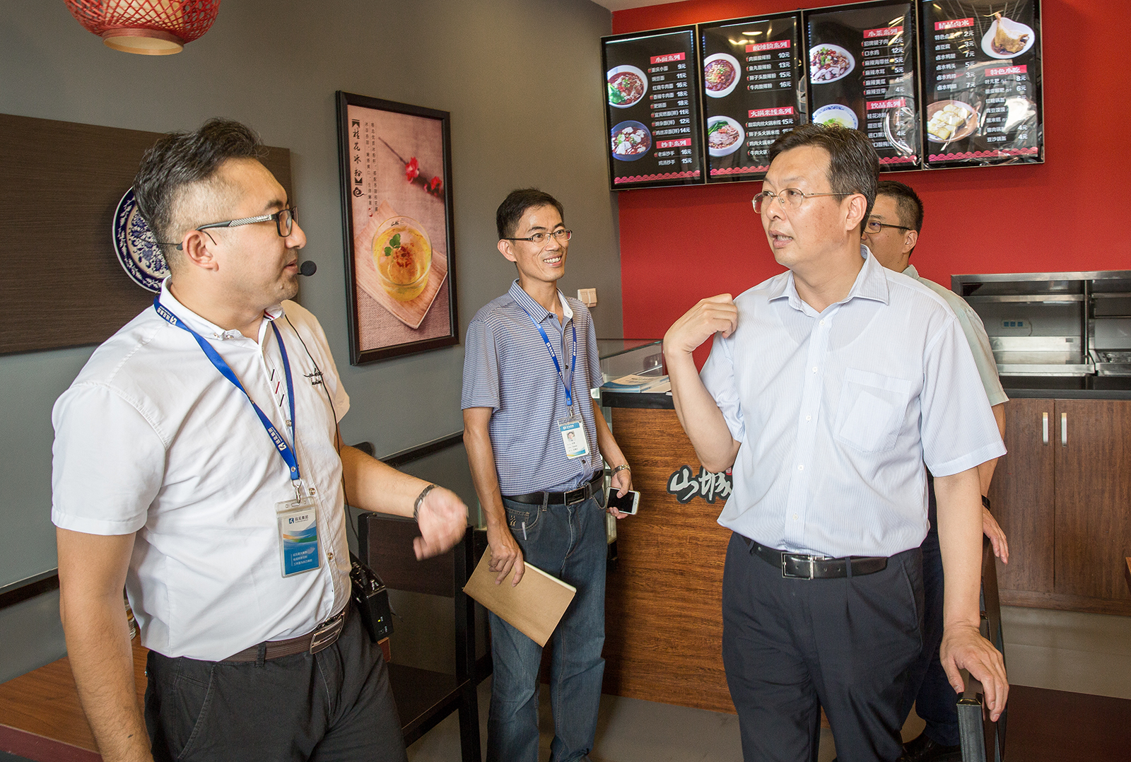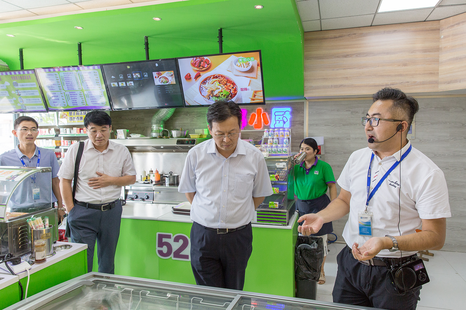 王書記一行和牟偉董事長(zhǎng)來到52week24小時(shí)便利店,對(duì)融合了鮮食快餐、網(wǎng)上微店、化妝品專區(qū)、華夫班特咖啡等多個(gè)模塊,并實(shí)現(xiàn)自動(dòng)結(jié)賬功能的復(fù)合型便利店進(jìn)行現(xiàn)場(chǎng)調(diào)研和指導(dǎo)。